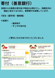 みなさまからの善意の寄付金や物品をお預かりし、須磨区内の福祉に役立てるために、善意銀行を設置しています。