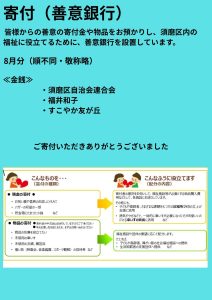 皆様からの善意の寄付金や物品をお預かりし、須磨区内の 福祉に役立てるために、善意銀行を設置しています。