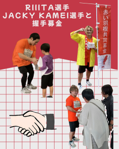 また試合終了後には、Riiita選手、JACKY KAMEI選手による”握手募金”が行われ、募金にご協力いただいた方と熱い握手を交わしてくださいました。