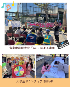 今年もステージプログラムでは、兵庫県共同募金会マスコットキャラクター「あかはねちゃん」・須磨区マスコットキャラクター「すまぼう」も応援に来てくれました。また、音楽療法研究会「YOU」さんより、心温まる演奏を聞かせていただき、オープニングを盛り上げていただきました!
