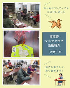 南須磨シニアクラブより「折り紙を教えてくれる人はいませんか?」とのご相談を受け、素敵なボランティアさんとつながりました。